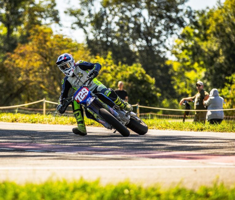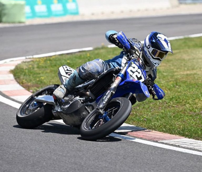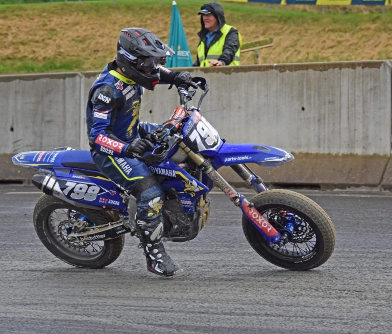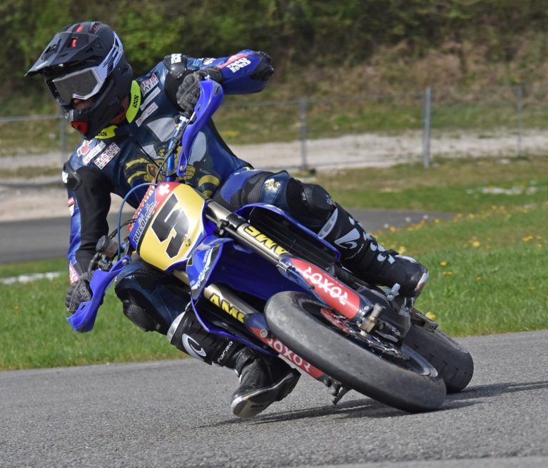 ich habe angefangen Supermoto zu fahren, weil es mich inspiriert hat zwei verschiedene Arten vom Motorsport gleichzeitig ausüben zu können. Ich bin in der Elektrikerbranche als Elektriker in der Ausbildung und habe zwei Supermoto-Titel in zwei verschiedenen Kategorien und mache gerne viel Sport.